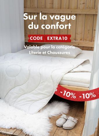 Ne manquez pas notre vente douillette avec des réductions allant jusqu’à -50 % 🔥 Sur la vague du confort ✨ Remise supplémentaire de 10 % sur la literie et les chaussures 🔖 Code : EXTRA10